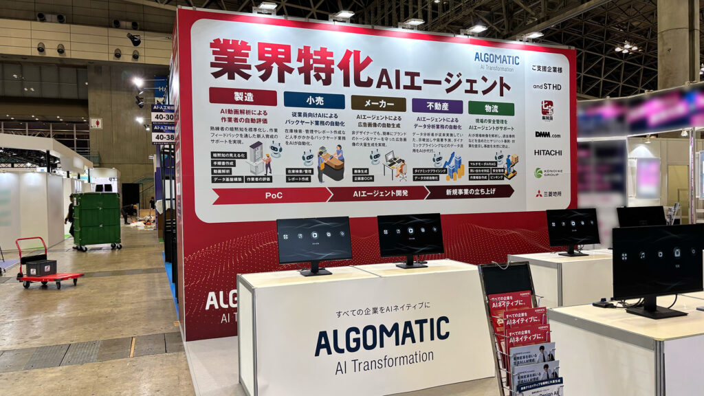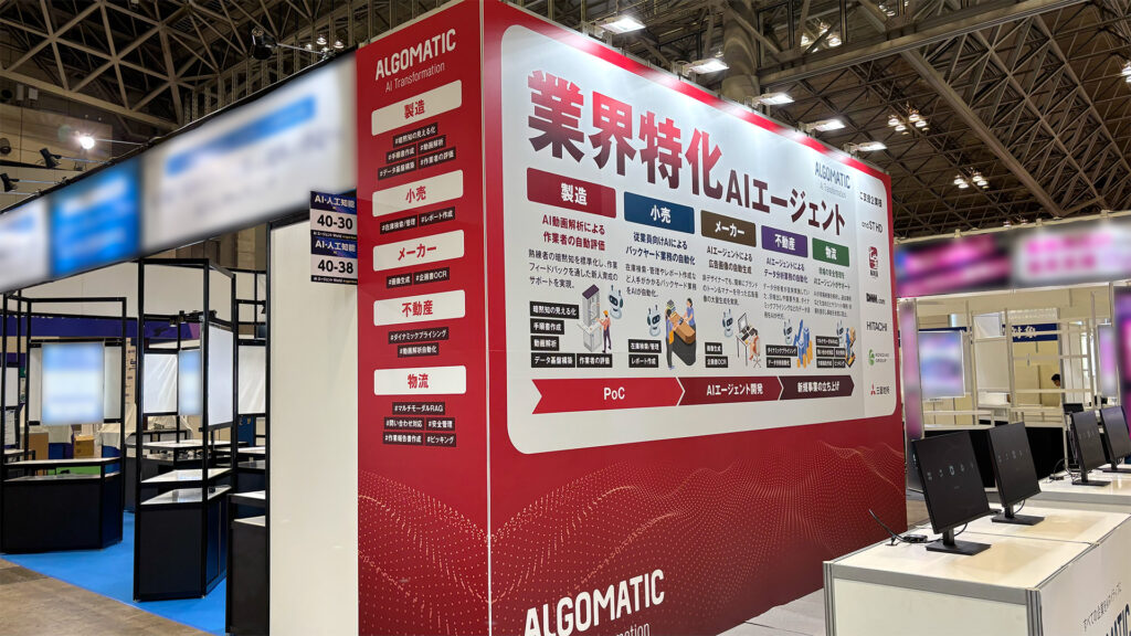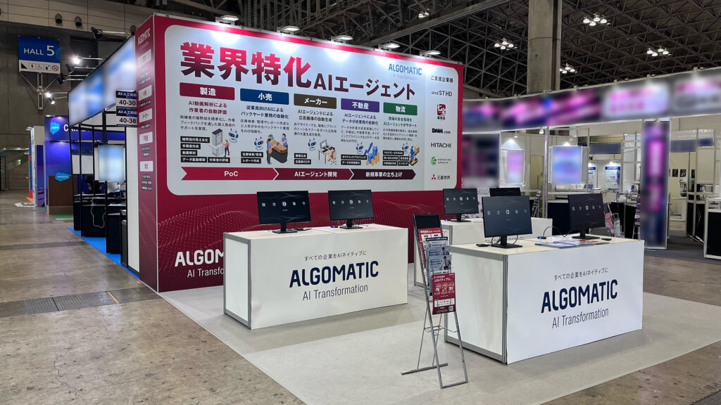 株式会社Algomaticが提供する「業界特化AIエージェント」の展示会出展に際し、NexTech Week 2025【秋】にて当社はブース施工を支援いたしました。